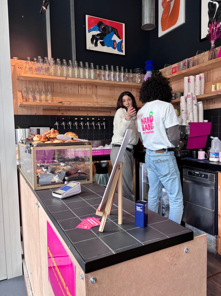 We also got a glimpse of the café’s creative side: house-made syrups, secret specials (watch out for that pistachio project!), and collabs that have sent queues down the street. Their Valentine’s Day flower-and-coffee combo was a viral hit, and it’s clear that innovation and fun are as baked-in here as the pastries themselves. The team takes pride in doing things a bit differently—whether it’s their playful TikTok presence, their homemade matcha raspberry concoction, or their ever-growing collection of jazzy playlists curated by the beloved Carla.